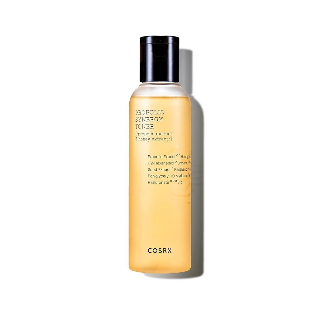 To Full Fit Propolis Synergy Toner της COSRX είναι μια τονωτική λοσιόν με 72,6% πρόπολη μαύρης μέλισσας και 10% εκχύλισμα μελιού.